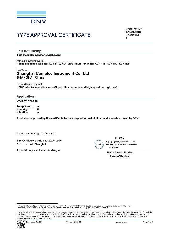 電流.電壓表TAE00002H2 DNV證書