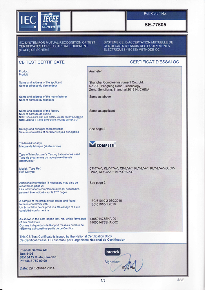 指針電流表-CB證書